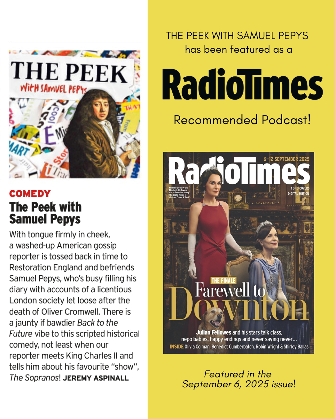 THE PEEK WITH SAMUEL PEPYS is your first-hand peek into how the concept of celebrity actors came to be — delivered with all the drama, scandal, and intrigue of a modern-day gossip podcast.